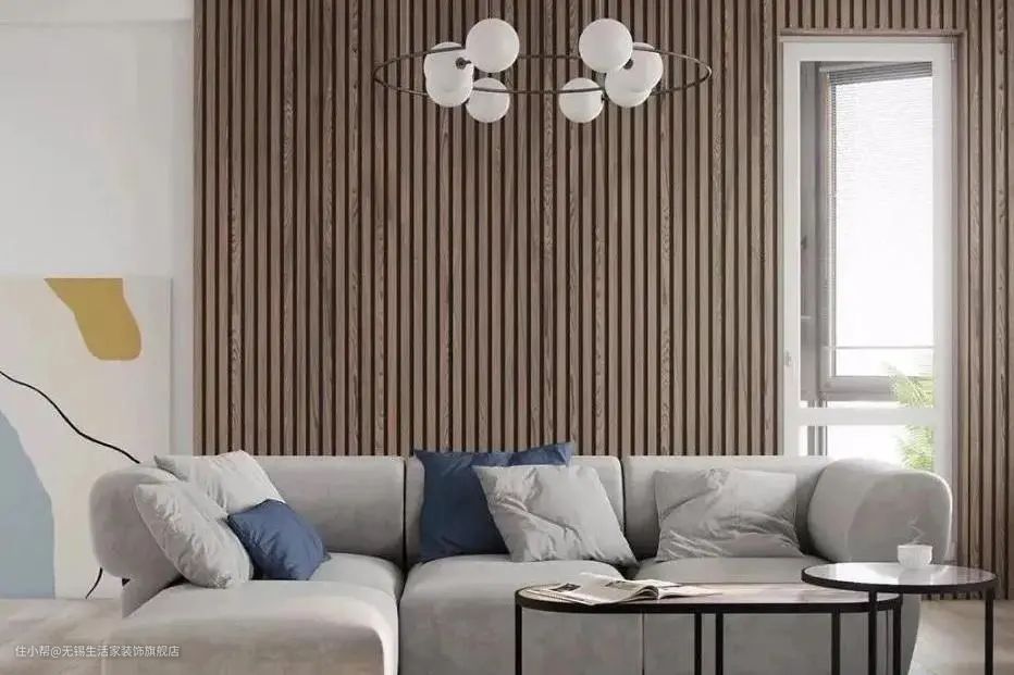 在墙面贴上木质感的装饰面,自带木质的天然属性,不仅可以让空间显得自然舒适,对墙面也能起到一定保护作用,比一般乳胶漆更耐用。