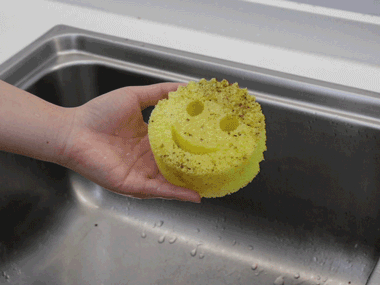 内部是多孔网状结构,冲洗更加方便,而且速干,比起抹布、洗碗海绵更不容易滋养细菌,也没有任何异味臭味。