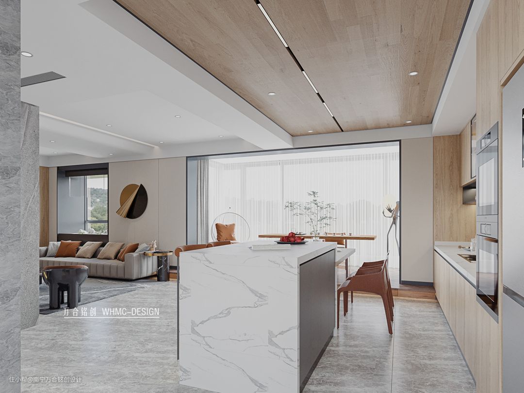 大理石岛台餐桌显得整体空间更加大气通透,也增加了收纳空间,这是一个藏零食的好地方哦