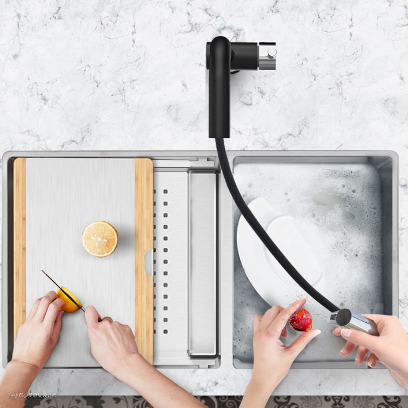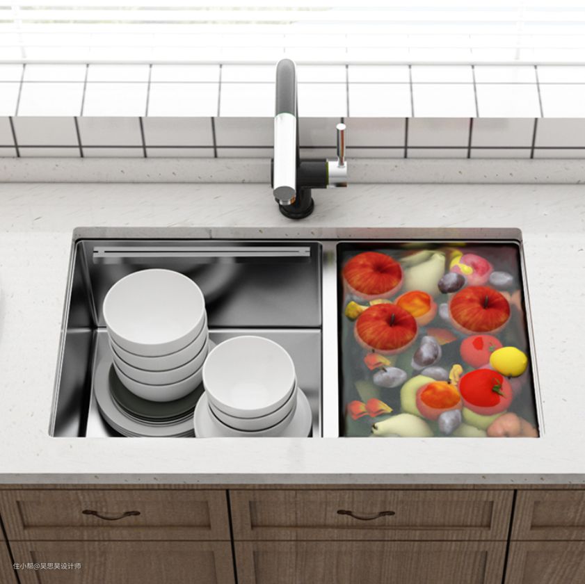④混合其他设备:现在很多电器厂家都开始制作水槽相关的电器了,比如水槽洗碗机,水槽果蔬净化器,这些设备对小户型来说非常方便用,如果选择这一类就不用太关心单槽和双槽了,按设备标配的来就行。