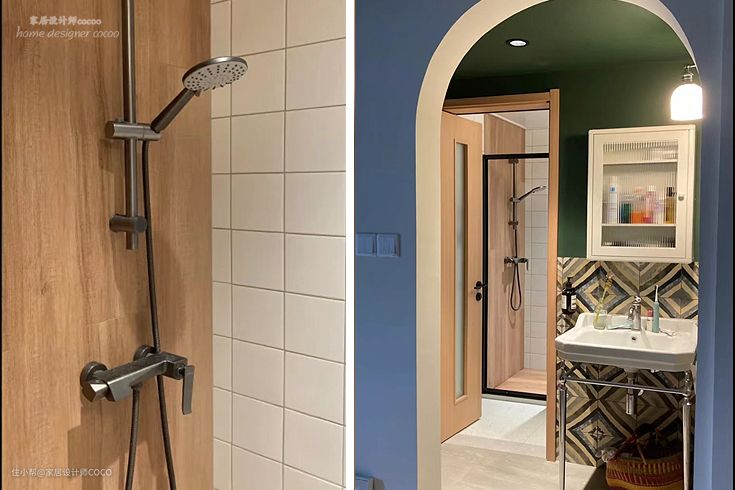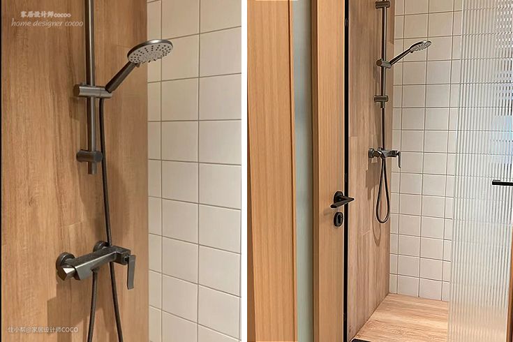 特别是在淋浴区,局部用木纹砖来替代花纹墙砖,可以起到意想不到的效果。