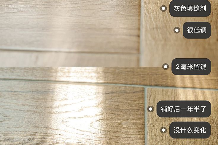 有地暖的北方,铺贴木纹砖建议预留1.5-2mm的伸缩缝,防止供暖后瓷砖涨裂,没有地暖的可以选择密缝铺贴。