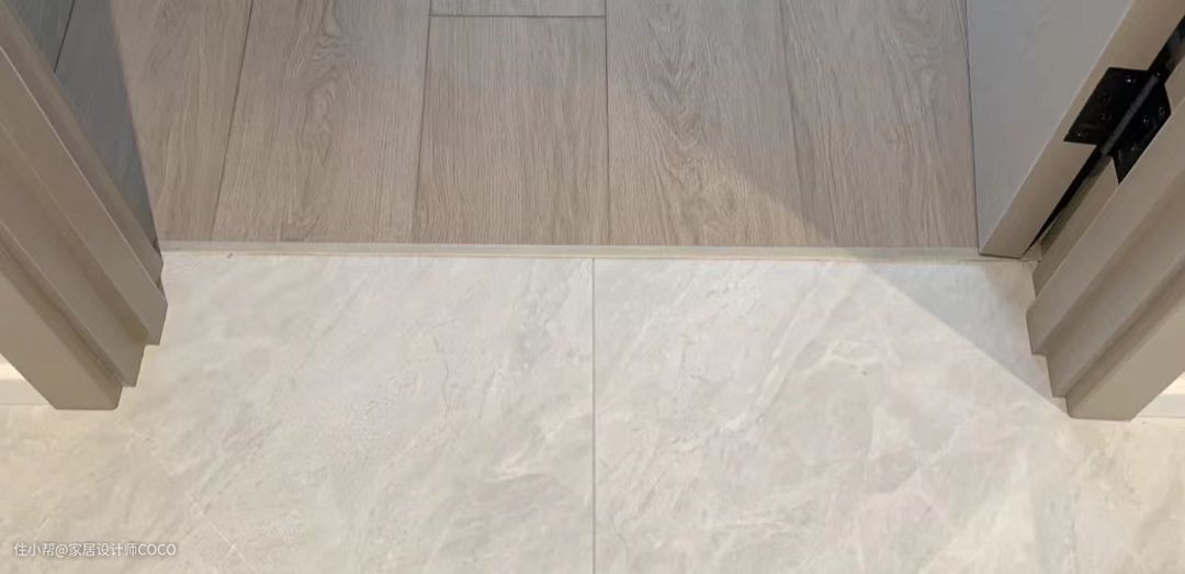 但是,木地板无法铺设厨房和卫生间干区,所以无法实现通铺的效果,需要加一个难看的过门石。