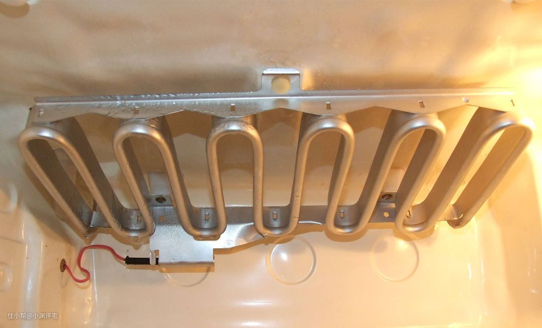 风冷冰箱的蒸发器,则是藏在深处。通过风扇,把冰箱里的热量吹到蒸发器附近,再被蒸发器吸走。