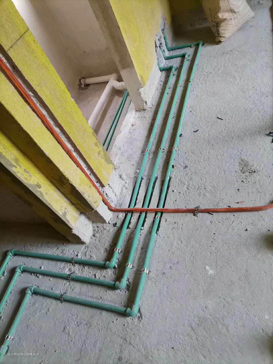 走线规则:水管不得高于墙面。路线越短越好,弯头越少越好,冷热水布管时,应特别注意热上冷下、左热右冷。