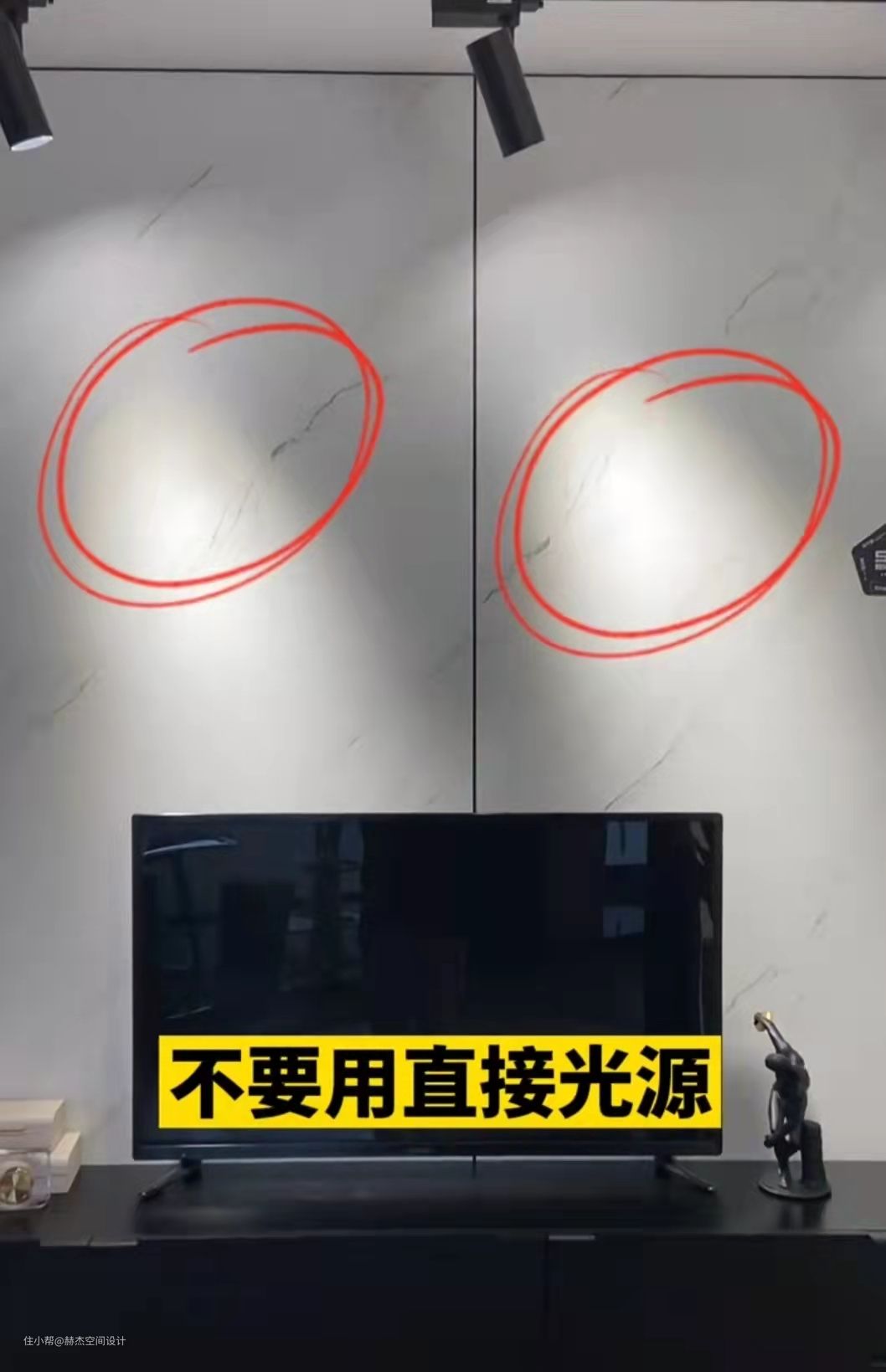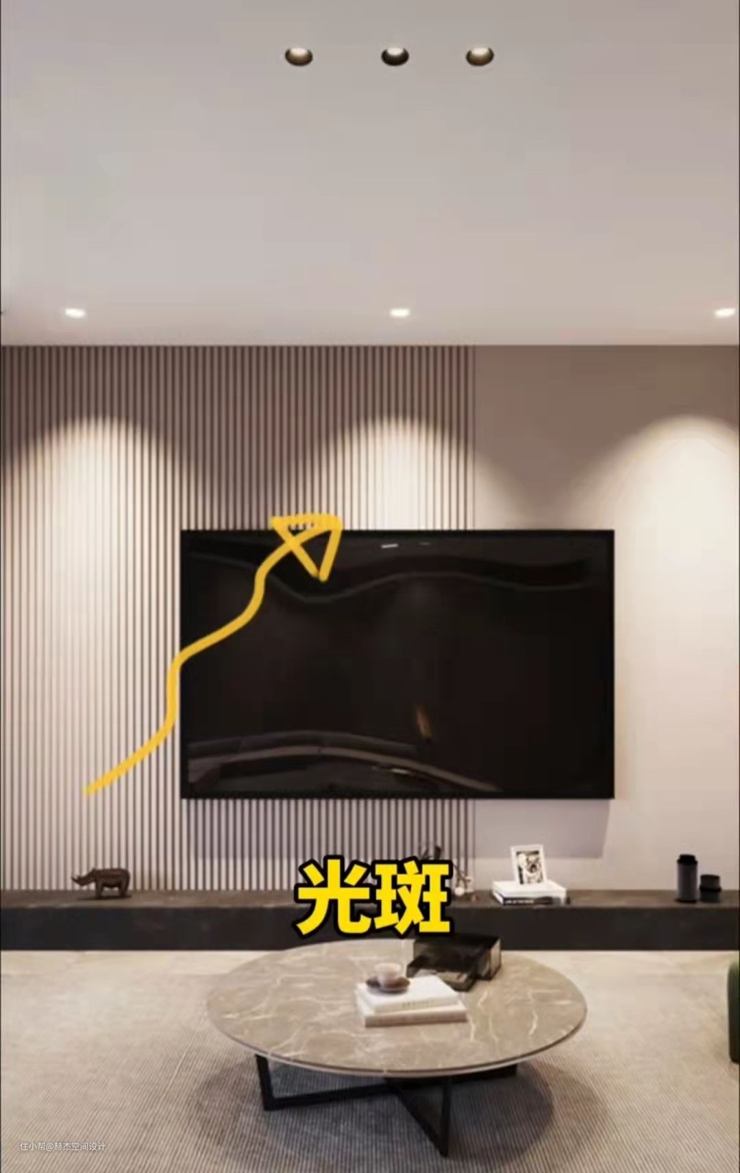 当我们看电视的时候,这些灯光会形成光斑,直射眼睛,对眼睛的上海很大。家里的背景墙,本来用了上档次的材质,结果这样几束光,让背景墙的品质感降到了极点。