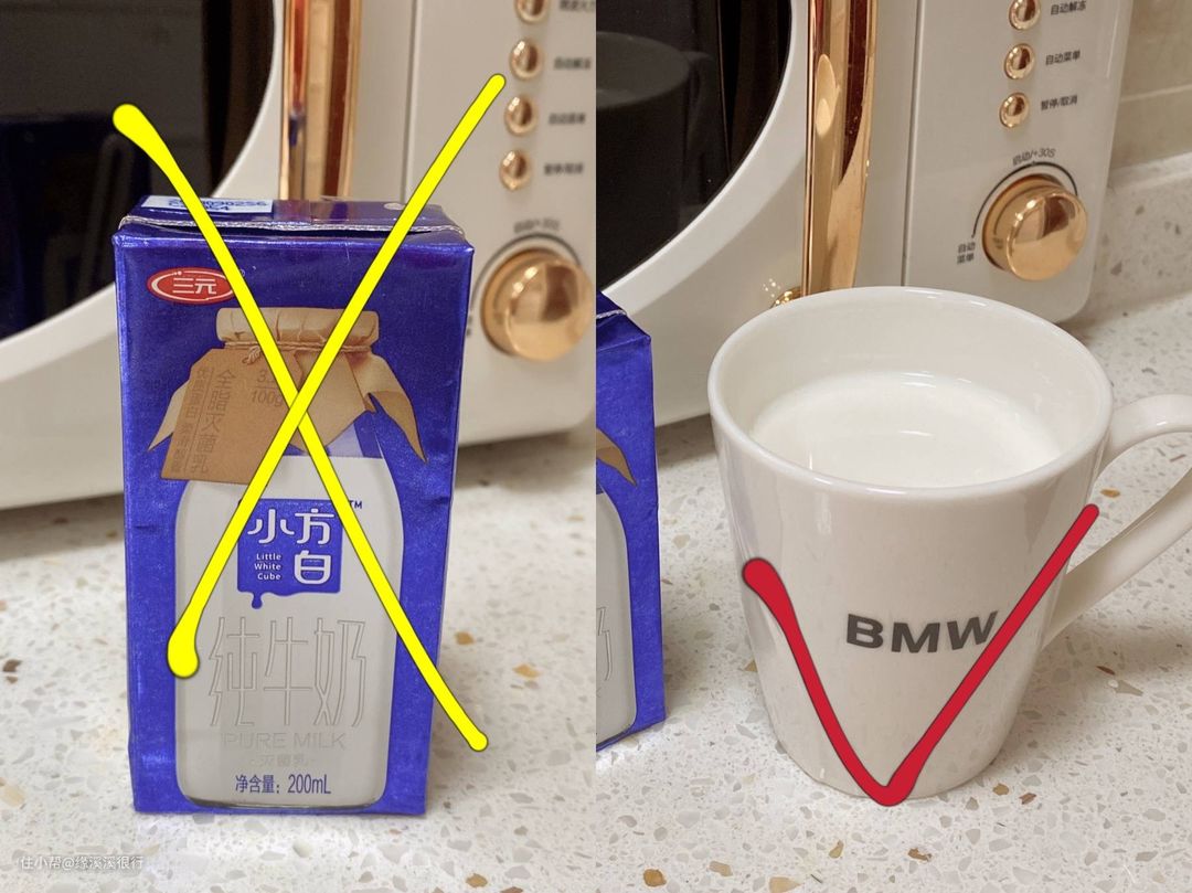 ▲冰箱里拿出来的冷牛奶我也不习惯,一定要喝热牛奶。将牛奶倒入杯子中放入大宇微波炉中,50秒就能加热到正好喝的温度。