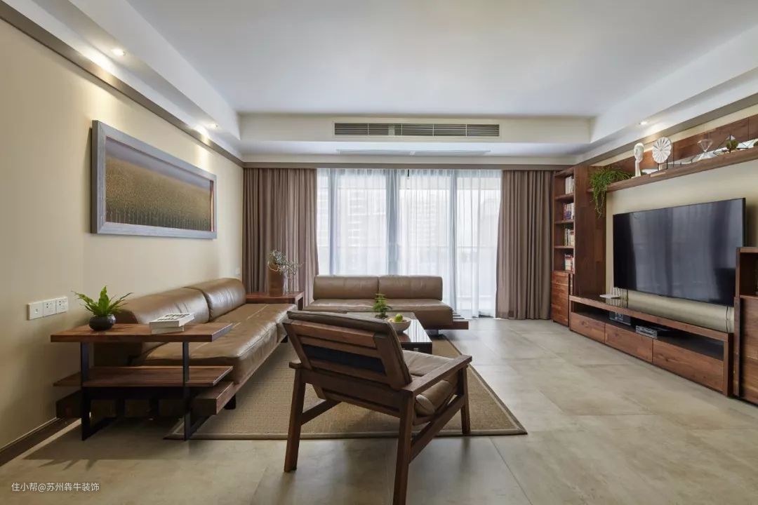 用纯皮艺的沙发布置在新中式风格的客厅里面,效果也是相当的华丽端庄而精致。
