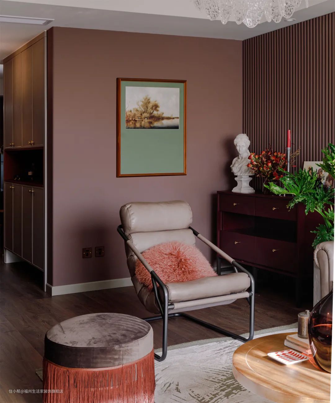 惊艳梅子色!110㎡复古混搭三居,在家分分被治愈!