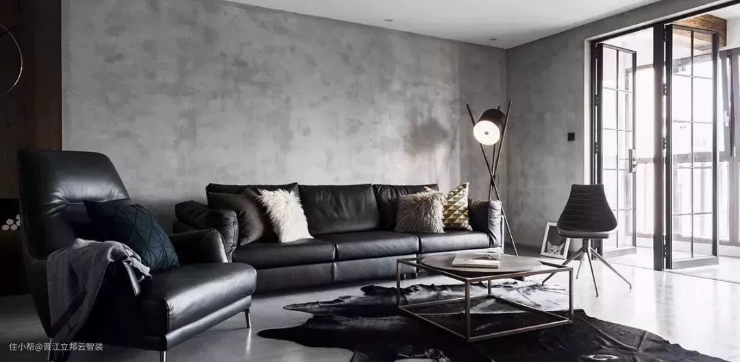 冷调的深灰则酷感十足,似乎是清水混凝土的代表,经常被用在工业感的空间里。它像是在灰中调入了一点蓝调,硬朗而又中性。若是希望在室内打造一种不羁的酷感,选它为基底一定不会错