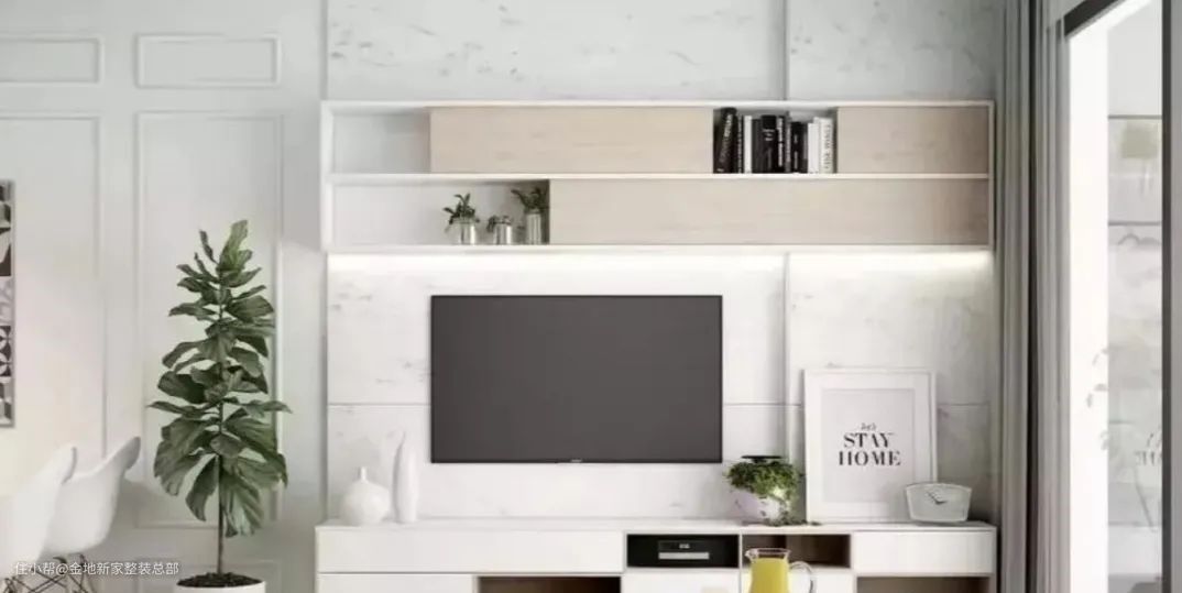 在电视柜和电视背景墙上,更多人选择是背景墙,费尽心思。殊不知电视柜选得好,立马拉高整个家装颜值,最最重要的是,收纳容量扩大3倍!