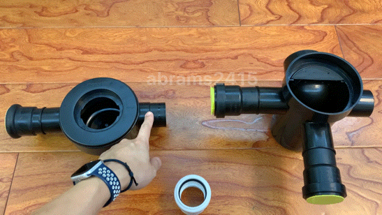 ▲转接器内部自带密封圈,PVC管直接插入转接器就可以了。只要确保水管水平安装就能保证不漏水。