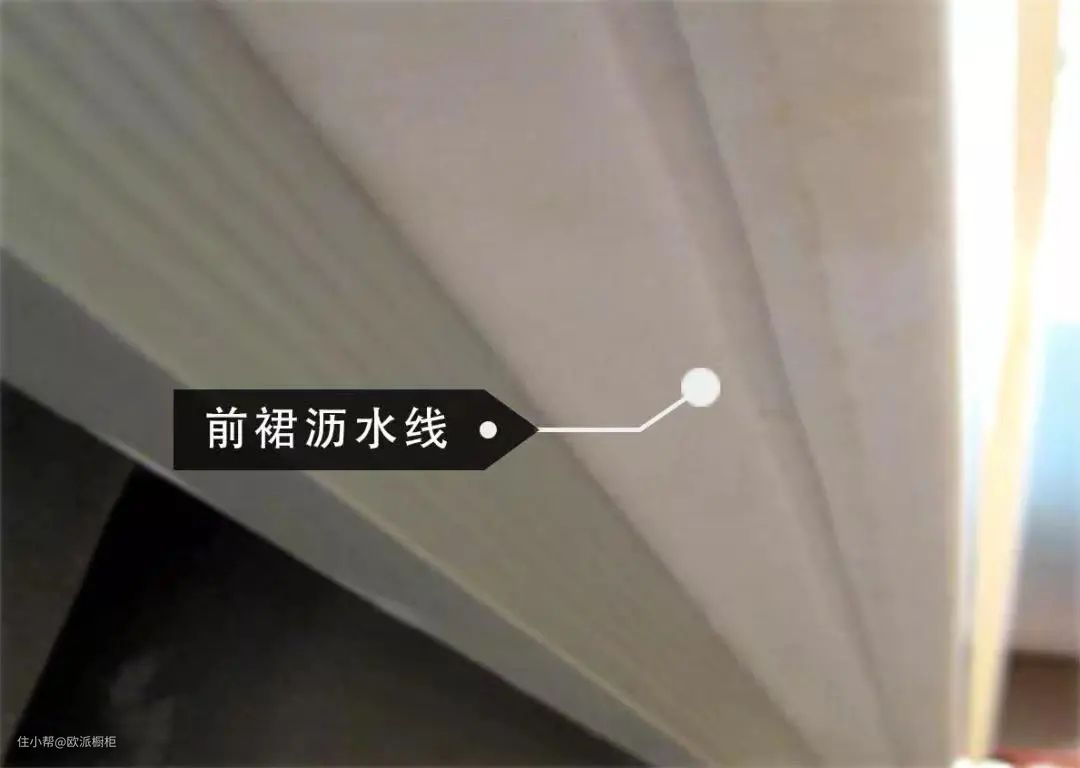 厨房要想再用二十年,做好「柜体防护」是重点,在每个台面前裙处加上一条5mm宽、3mm深沥水线,可以有效防止台面上的积水顺流而下浸泡到柜体,从而导致柜体发霉的情况发生,进而延长厨房使用寿命。