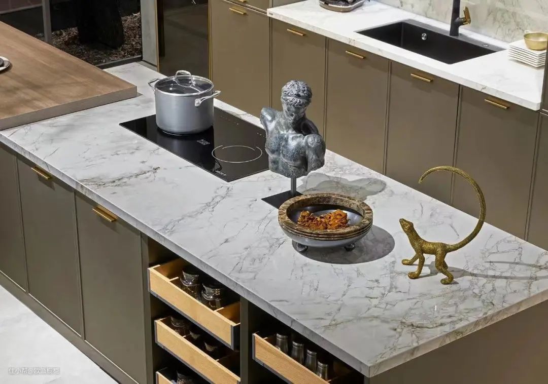大理石台面素来以高颜值而闻名「厨房界」,靠“脸”吃饭的它花纹丰富、色泽亮丽,受到很多装修人士的喜爱。
