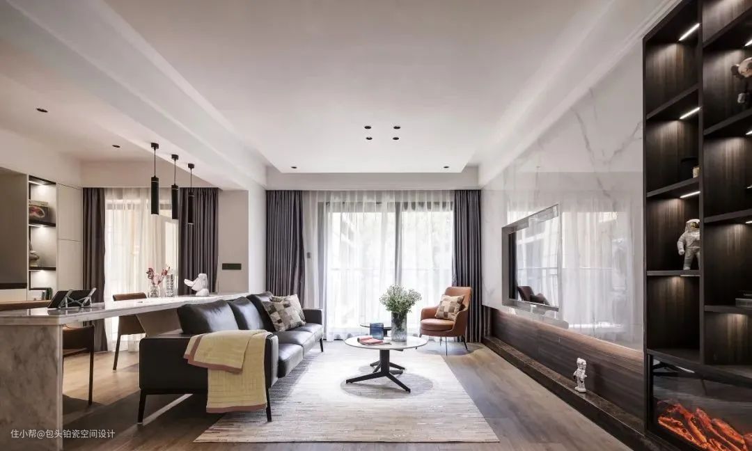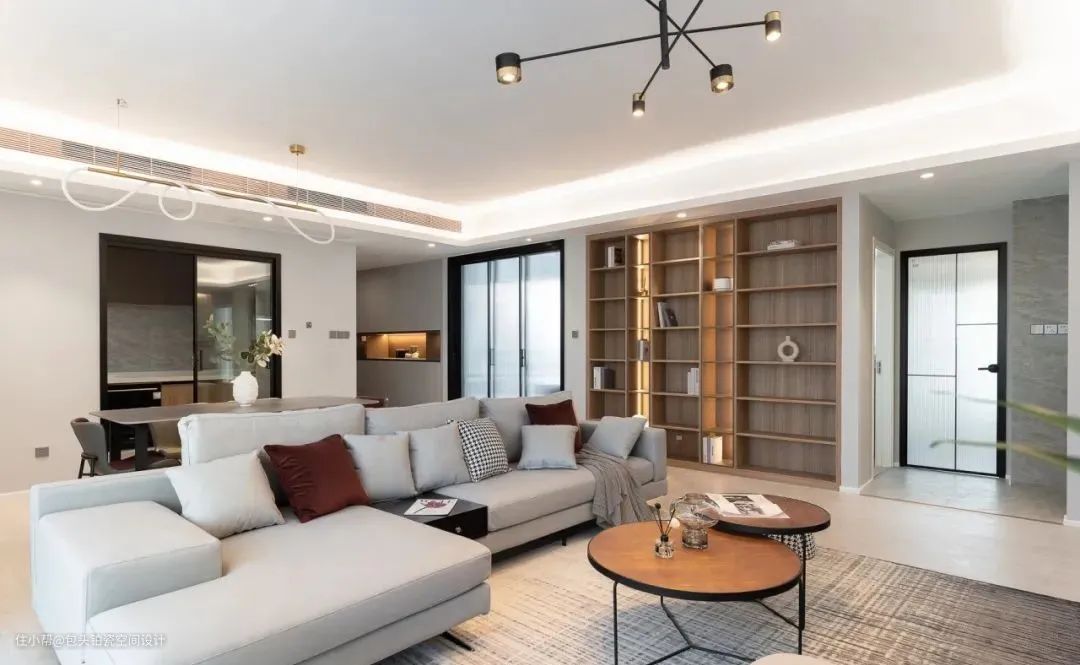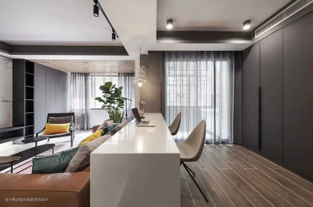书房,是家里有着特殊性的一个空间,它可开可合,因此给横厅带来更多可能。客厅与开放或半开放书房的结合,也相当流行。