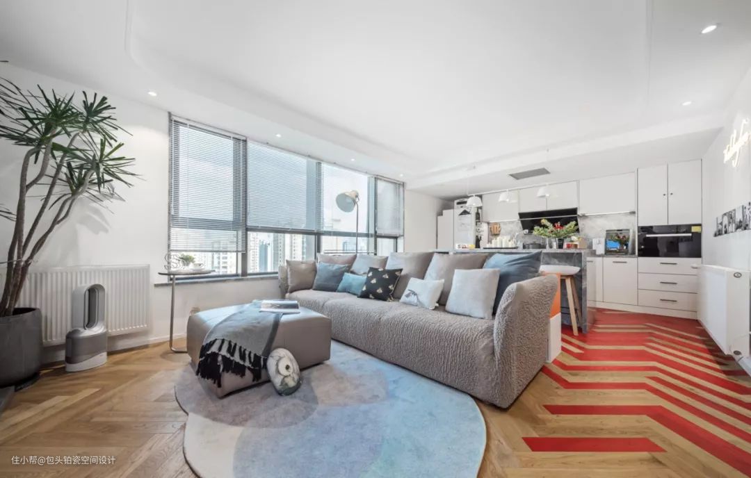 这样的布局方式,通过客餐厨一体化的方式,能让居室显得更大。