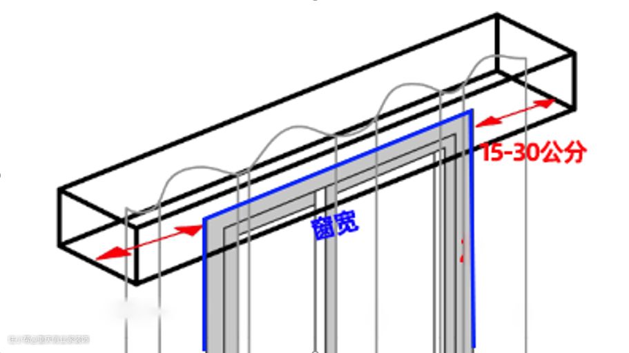 窗帘盒的净深度尺寸:侧挡板的深度通常需要做到15-20公分,太浅则会暴露窗帘杆及帘头,太深则拆装时不方便,整体美观度大打折扣。