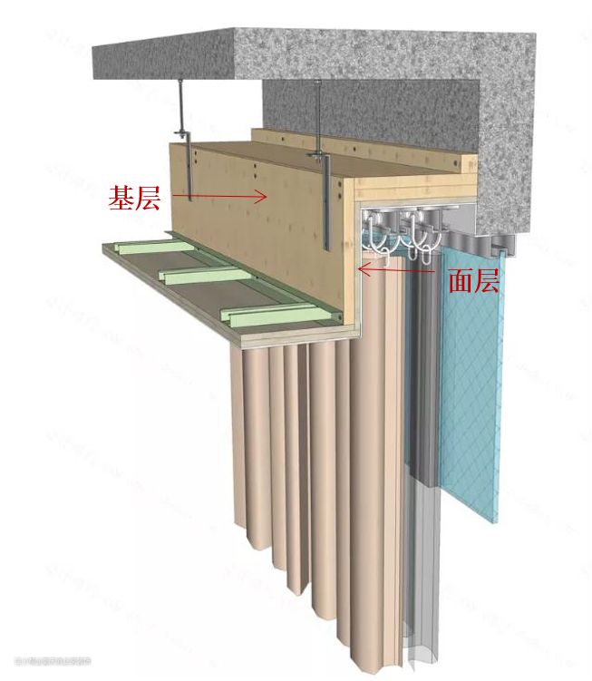 窗帘盒的基层材料最好选用红松、白松或者硬杂木制作的木工板,这类木材木质疏松纹理顺直、不易膨缩变形,使用时涂刷防火涂料更好。