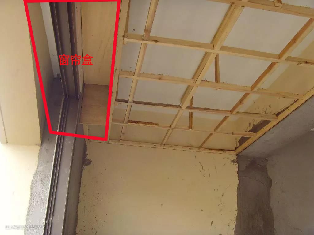 窗帘盒的面层板通常采用与吊顶相同的石膏板,但由于窗户处距离室外近有潮湿的风险,因此使用防潮石膏板更保险。
