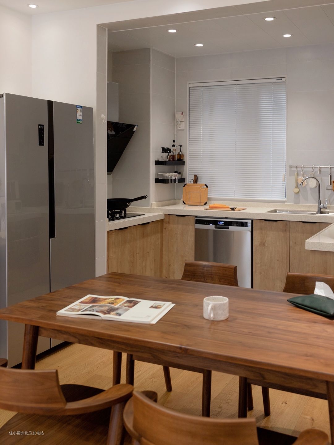 因为厨房面积太小了,整体以简洁为主,不常用的东西都放橱柜下面,要不然很容易乱糟糟的,操作也不方便。