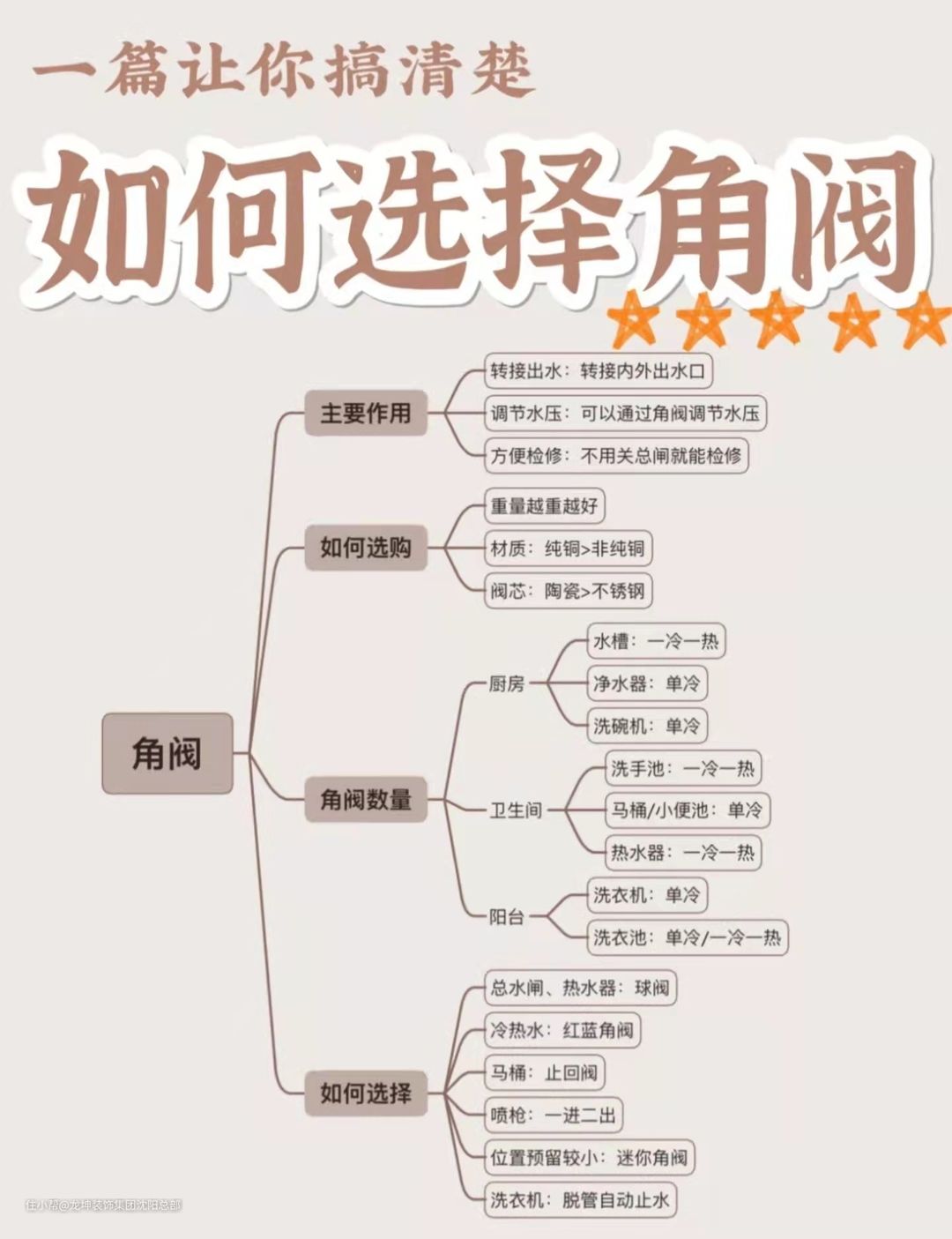 针我在购买角阀的时候特别迷茫,只知道水电师傅同我说买十五个,不知道要买哪种都用在哪里,现在安装结束终于大概明白了,分享给大家希望大家通过我的经验一次搞清楚角阀是什么、该如何选择: