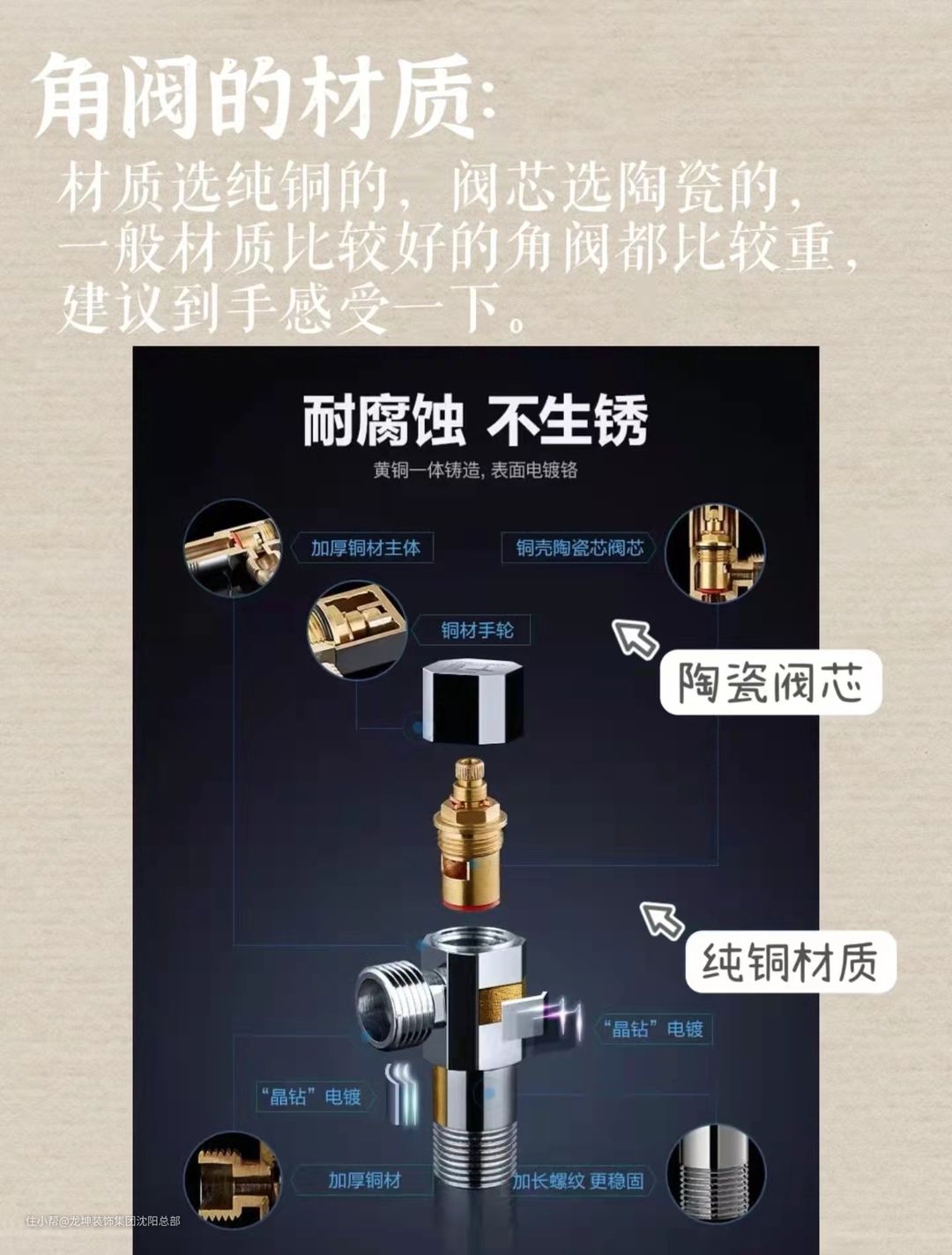 1.角阀涉及到用水安全,尽量购买有品质保证的大品牌;