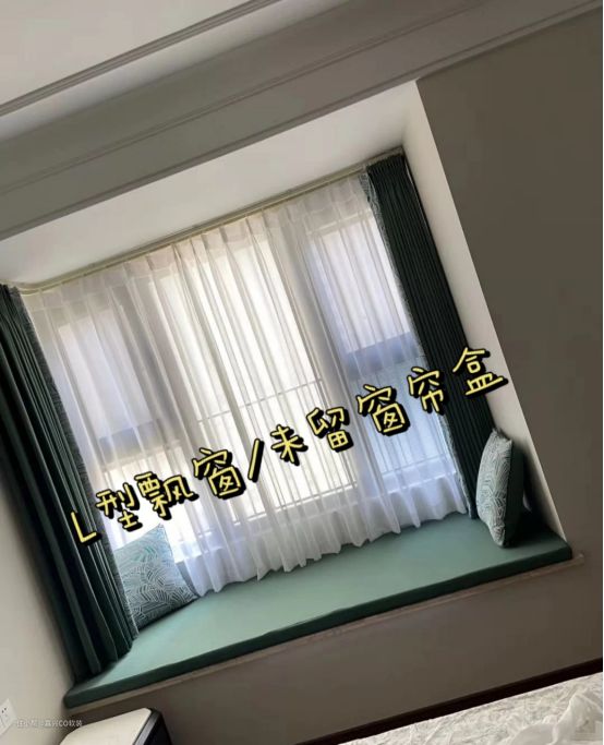 1.L型飘窗,未预留窗帘盒,内侧满墙未做窗帘盒