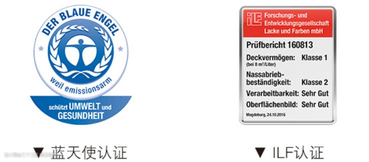 欧美市场的第三方认证权威性和客观度高,这个是他们自由资本发展多年的结果,国内的第三方暂不能比。类似德国的蓝天使认证,全球最严苛的环保认证;ILF认证,涂料权威机构认证检测。