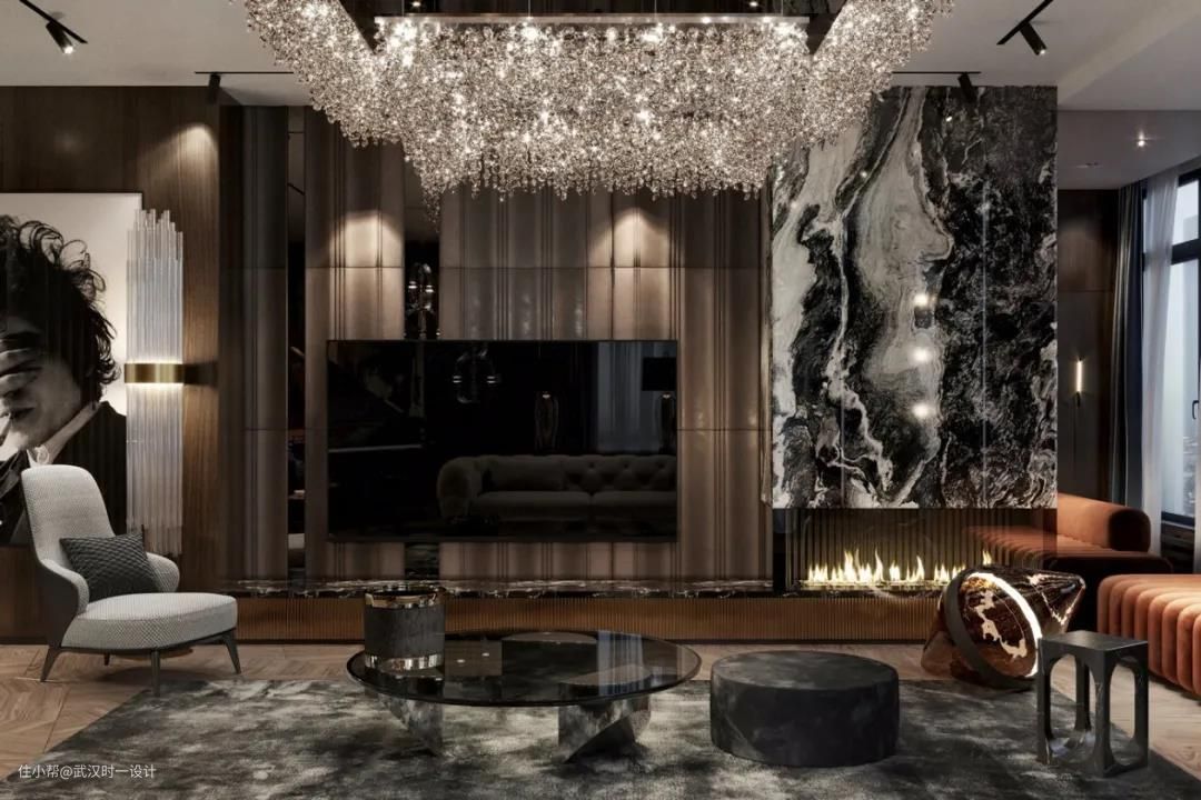 对于一个客厅来说,视觉焦点一般聚集在茶几上,所以在茶几上方我们可以设置几盏,明装或者暗装宽光束角灯具,来作为局部照明