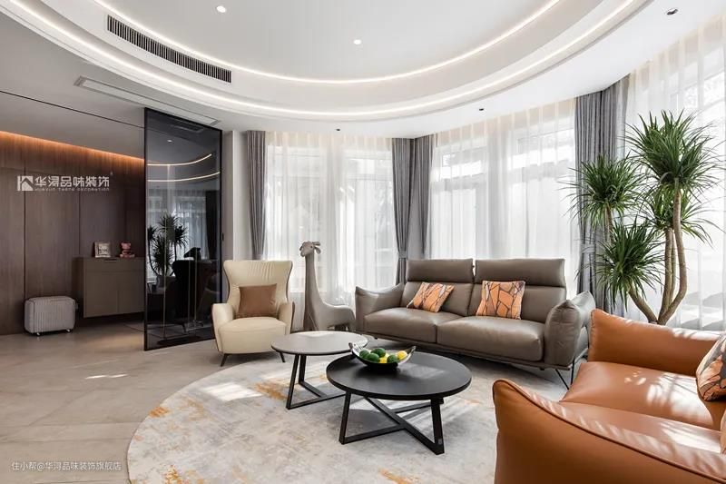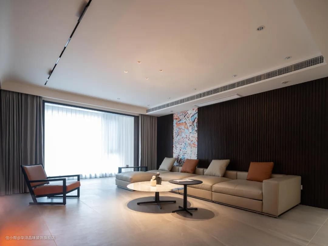 客厅作为家中C位,日常用来招待客人、看电视和读书,灯光只需均匀的覆盖整个空间就可以,不需要强烈的光源照亮某个区域,采用分散光源可以更好的调节空间亮度。