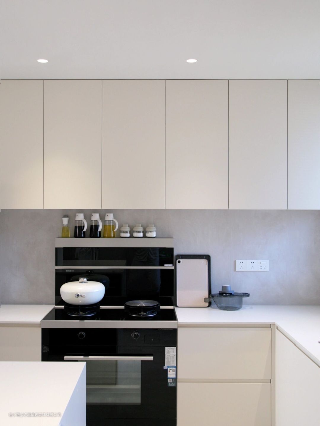 柜子和门是按照艺术涂料颜色定制的奶油色,完全统一