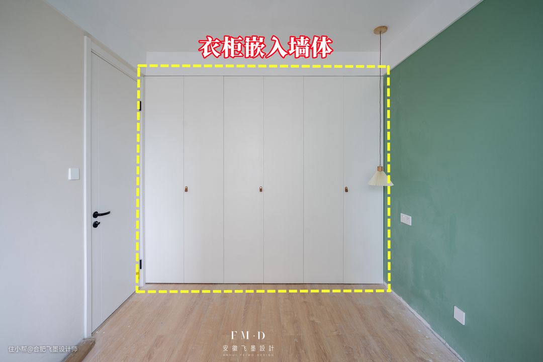 当然指的是衣柜,直接将墙面掏空部分,之后将衣柜柜体嵌入进去,和墙面融为一体不凸出,既满足了储物的需求,同时也不遮挡卧室门的视野,两全其美。PS:衣柜做嵌入式设计,前提得看墙面能不能拆,承重墙动不得。