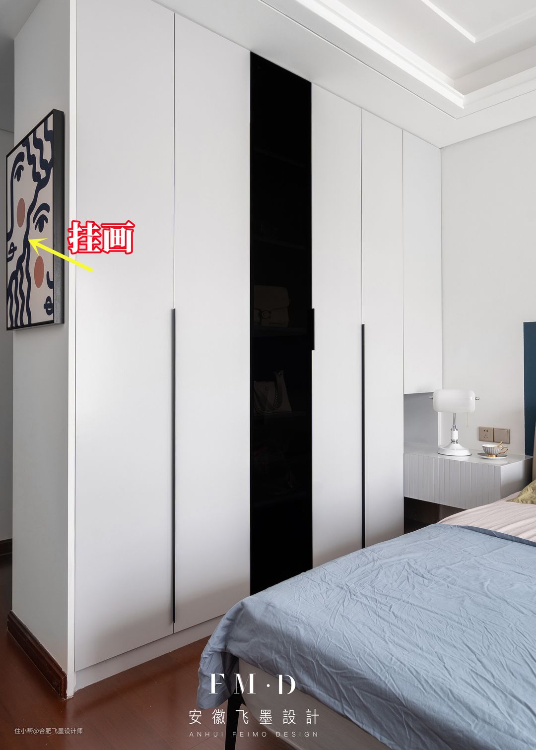 这是最简单的一招了,直接选一幅喜欢的画,然后挂在衣柜侧面即可,这样每次进门都被它吸引住眼球,自然压抑感也就消失啦。
