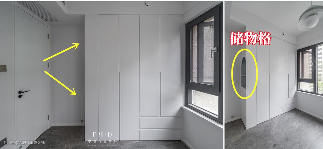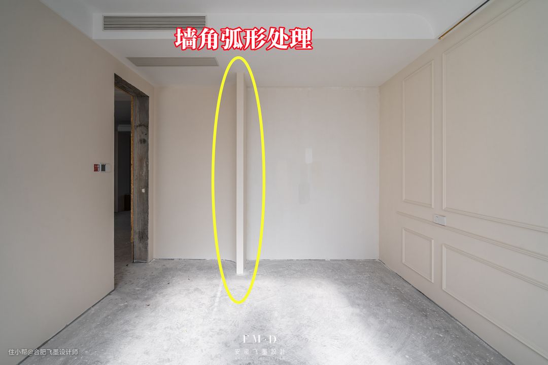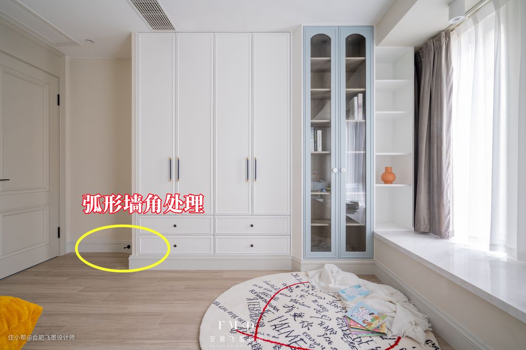 指的是与墙面之间的夹角,墙面直接包成弧形,衣柜侧面变得柔和多了,最重要的是卫生也好清理很多。