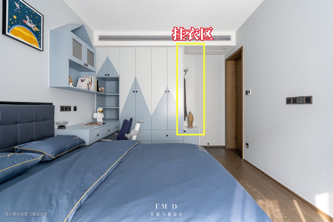 衣柜不做满,而是选择留空一部分,瞬间整个柜体带来的压抑感就没那么多了,设计感也是十足,大大提升了整个卧室档次。