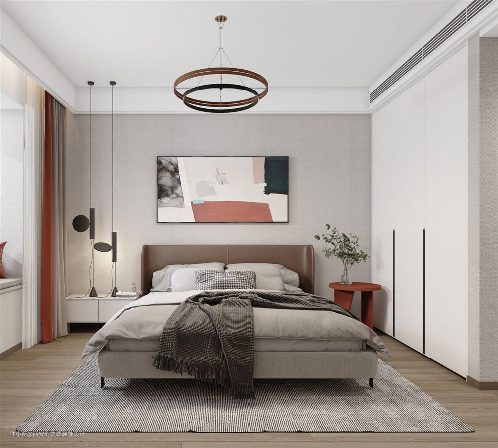 次卧以大方简洁、清逸淡雅,而又极富现代感的简约陈设,贯穿在卧室空间中。