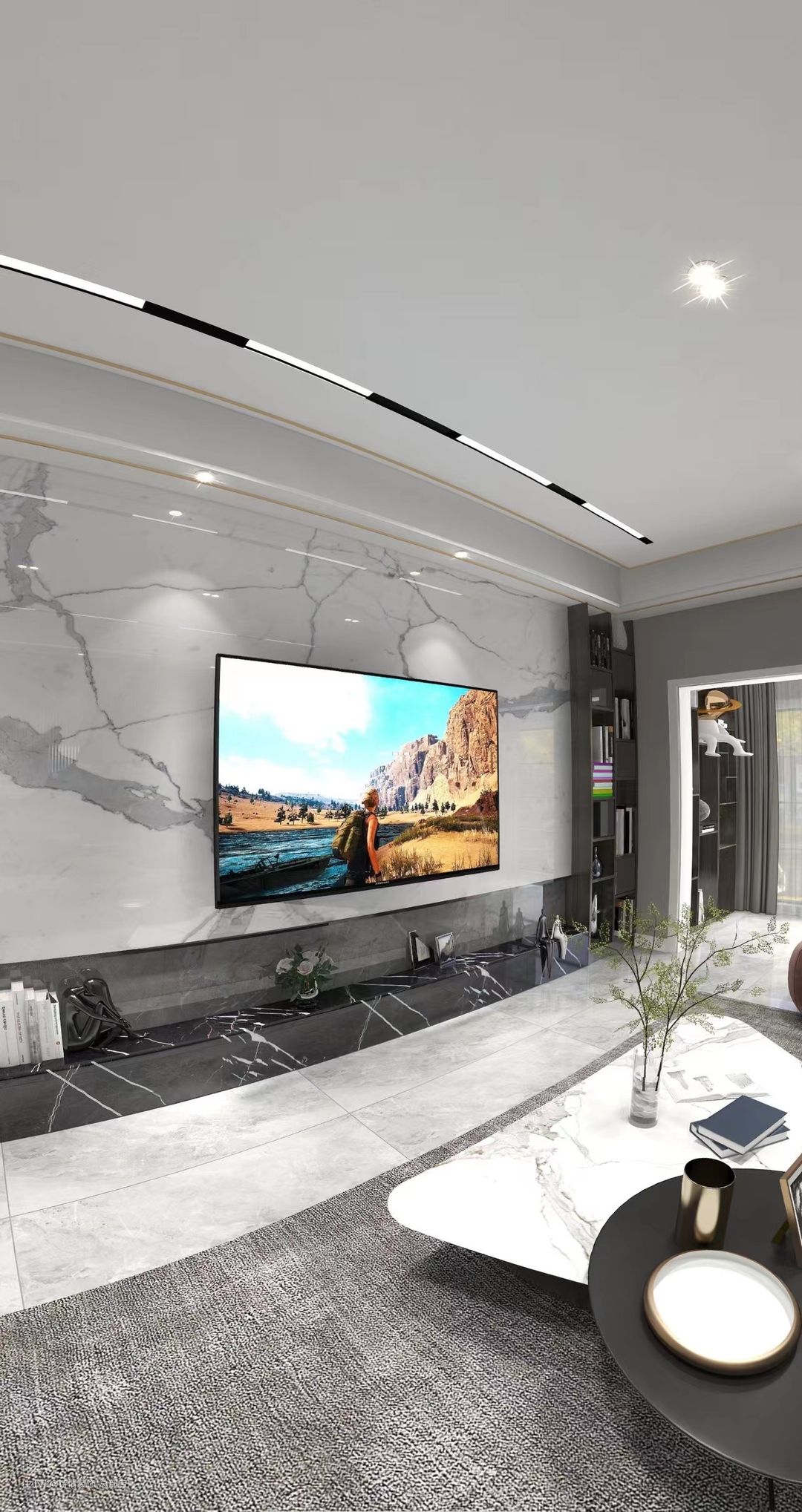 整个房间的感觉虽很简约,但不简单,不管是灯光设计上还是局部实际使用上,设计师都用了不少灵感去体验业主需求的感受,电视墙使用石材装饰,大地石纹路质感强,光影效果好,好清洁能减轻家务疲惫,全房无主灯设计极简好看,给家最简单的高级。