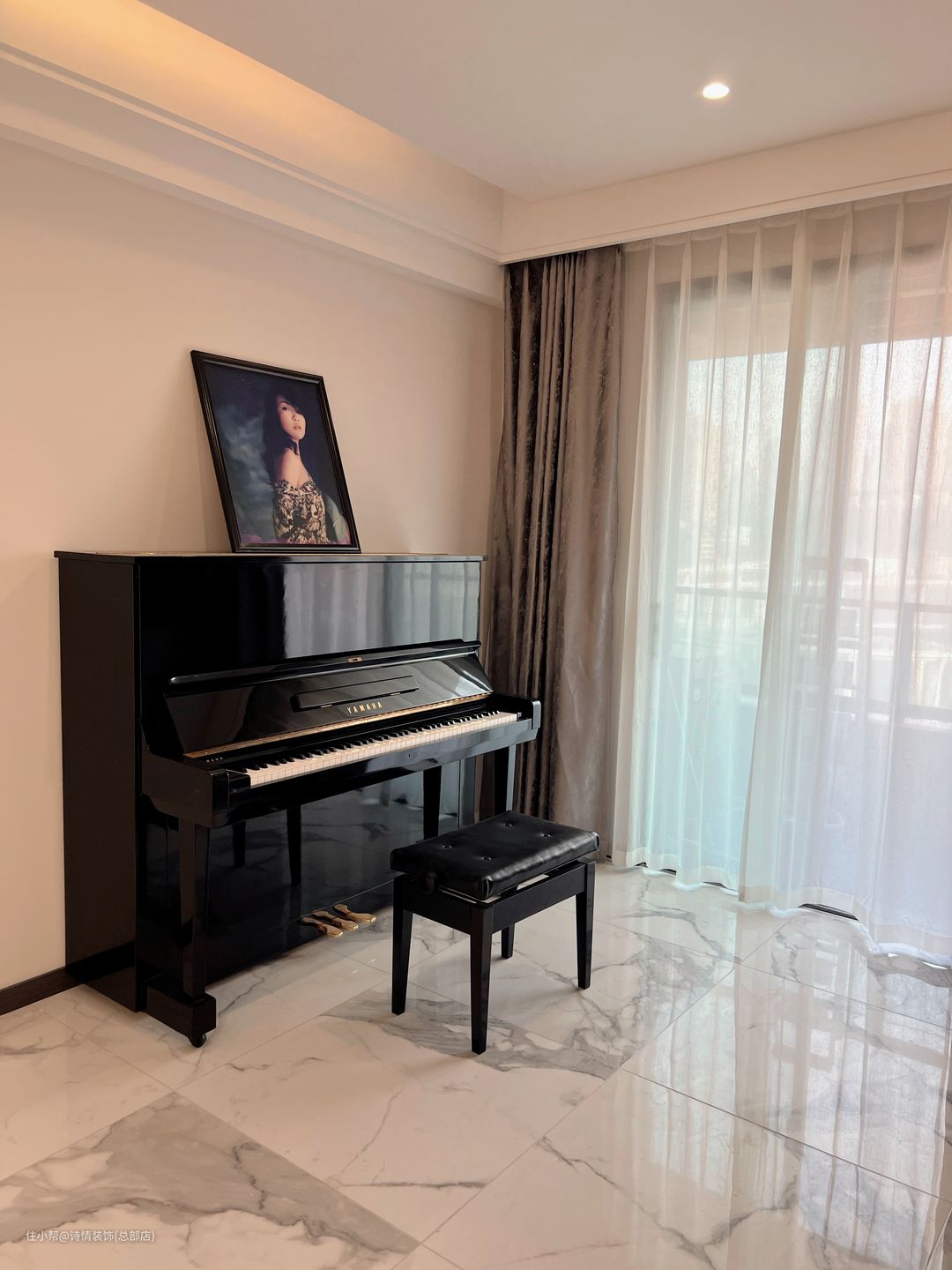 厨房后是一间书房,业主很有艺术才华,把书房改成了钢琴室,设计摆放上虽简单,但灯光搭配上整体看上却很温馨。