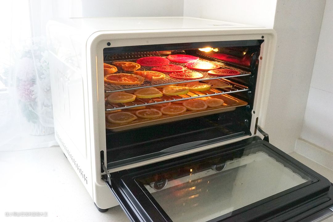 旋钮+按键+显示屏,新手老手都爱的极简操作。因为有强大的风炉功能,三层同烤也能保证温度均匀无死角,大大提高效率和成功率。而且用它低温烘烤一炉果干只需大约1度电,而市面上的果干机制作一炉果干需要耗费18度左右的电。