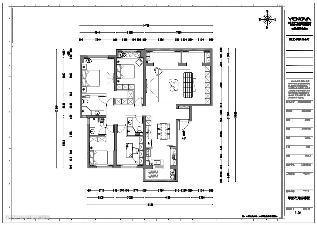 户型的缺点:门厅玄关区域太小,每个卧室划分得也很小。