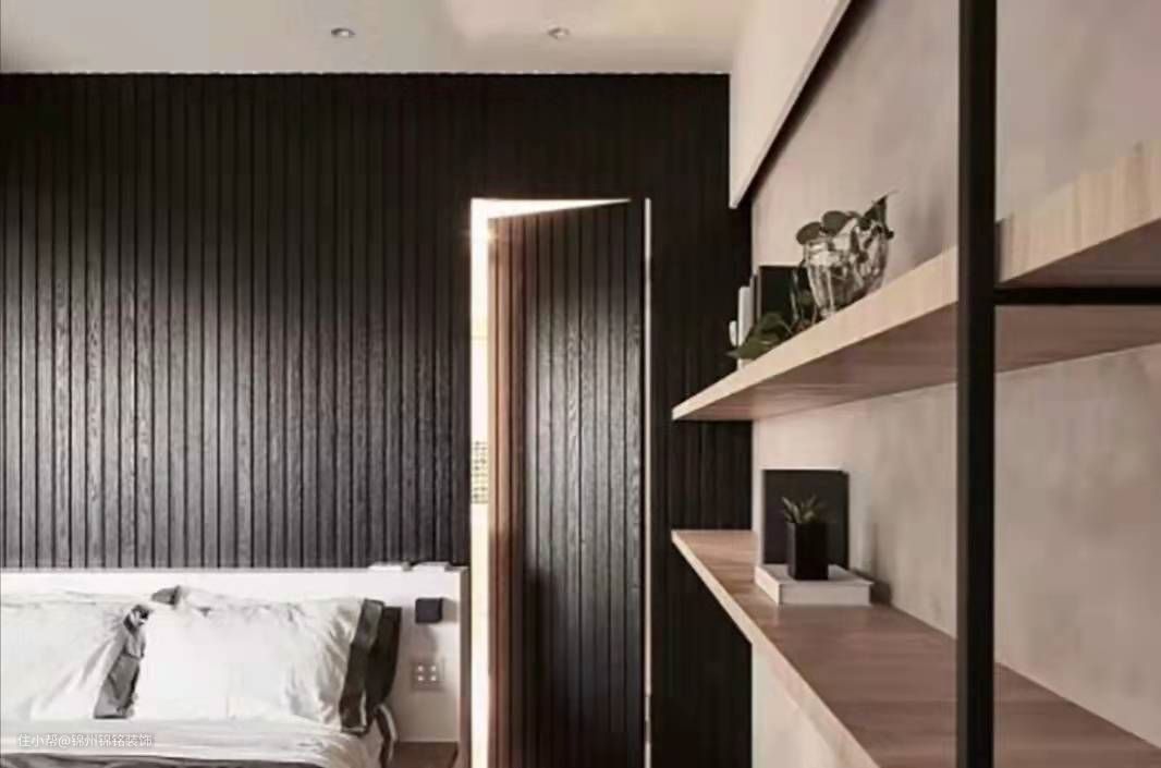 -背景墙的弧度和隐形门都是石膏板做的
