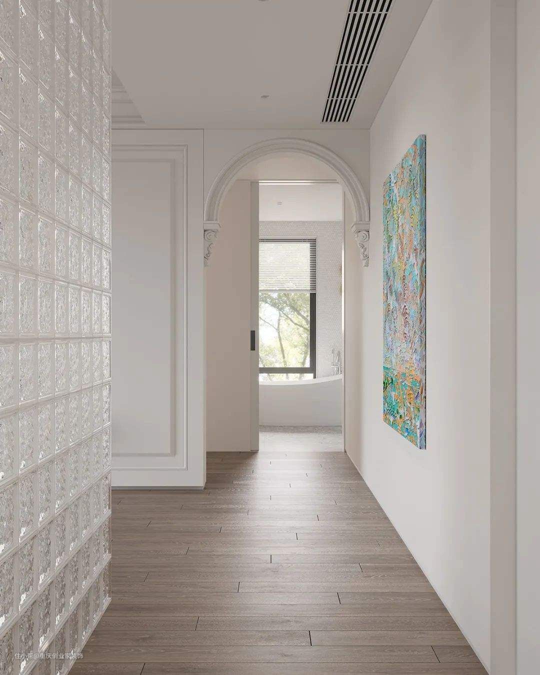 拱形门和拱形门连续使用,可以丰富空间层次,视觉上空间更深,更有曲线美。拱形门搭配石膏线条,打造复古感。拱形门和拱形窗搭配使用,加上简单的软装,可以形成古典的取景框设计,将景色融入家里。