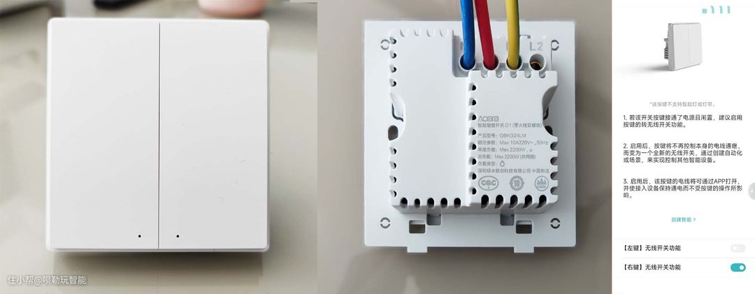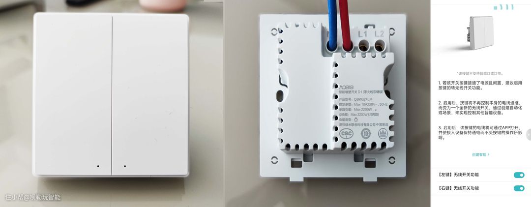 以零火线双键版举例,用实际开关来更详细的分享一下零火线是怎么接线的。