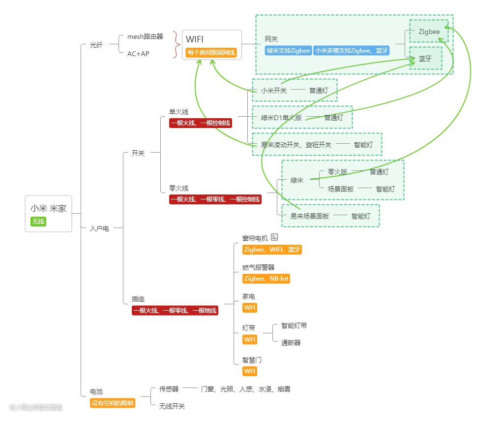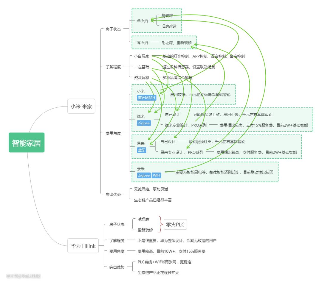 分享了这么多,可能有人还是处在一个懵圈的状态,简单画了个导图,可以帮助大家去选择,只是从我目前对智能家居的了解和体验上来给大家做个简单的分享。