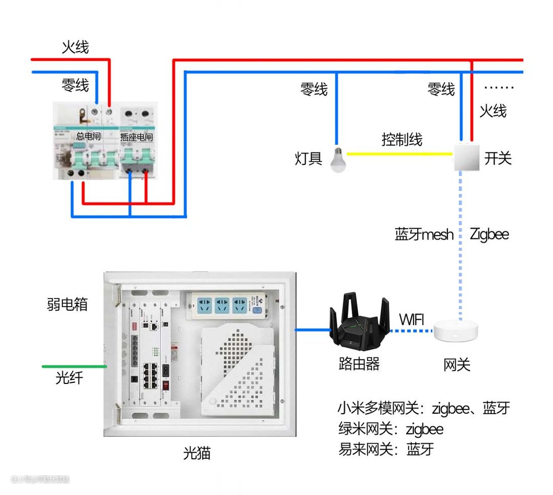 其次就是电路的规划,主要为开关的布线,布线方式有两种,分别为单火线和零火线。单火线也就是传统的布线方式,而零火线是在原有开关内多加一根零线,也就成了三根线(一开分别为零线、火线、控制线),用来保证给开关供电。也有人会说,我家不是零火线照样可以使用,没错的,如果选择了单火(一开为火线、控制线)也是可以使用智能开关的,但相比稳定性要差。