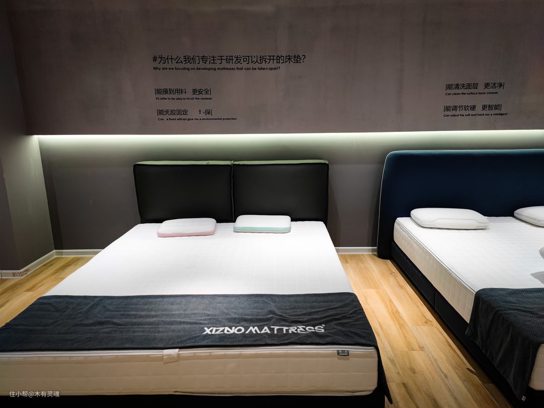 但事情就是这么阴错阳差,因为老婆大人和我上下班时间有差异,当时她想考虑下独立袋弹簧的款式,刚好舒达当时需要等一段时间才有货。我和她再研究了一下,之前关注过的定制化床垫里栖作无论是在朋友圈还是各类拆解视频里口碑都很好,在上海北京都有线下店,离家也不远,于是开车去了栖作,刚好见识见识所谓可拆卸是不是噱头。