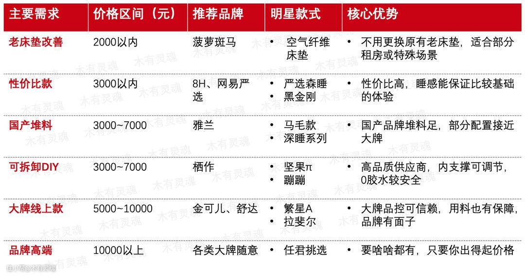 - 低价选国产走量性价比品牌,高价大牌靠睡选优,万元以内销量领先的大牌线上款值得买