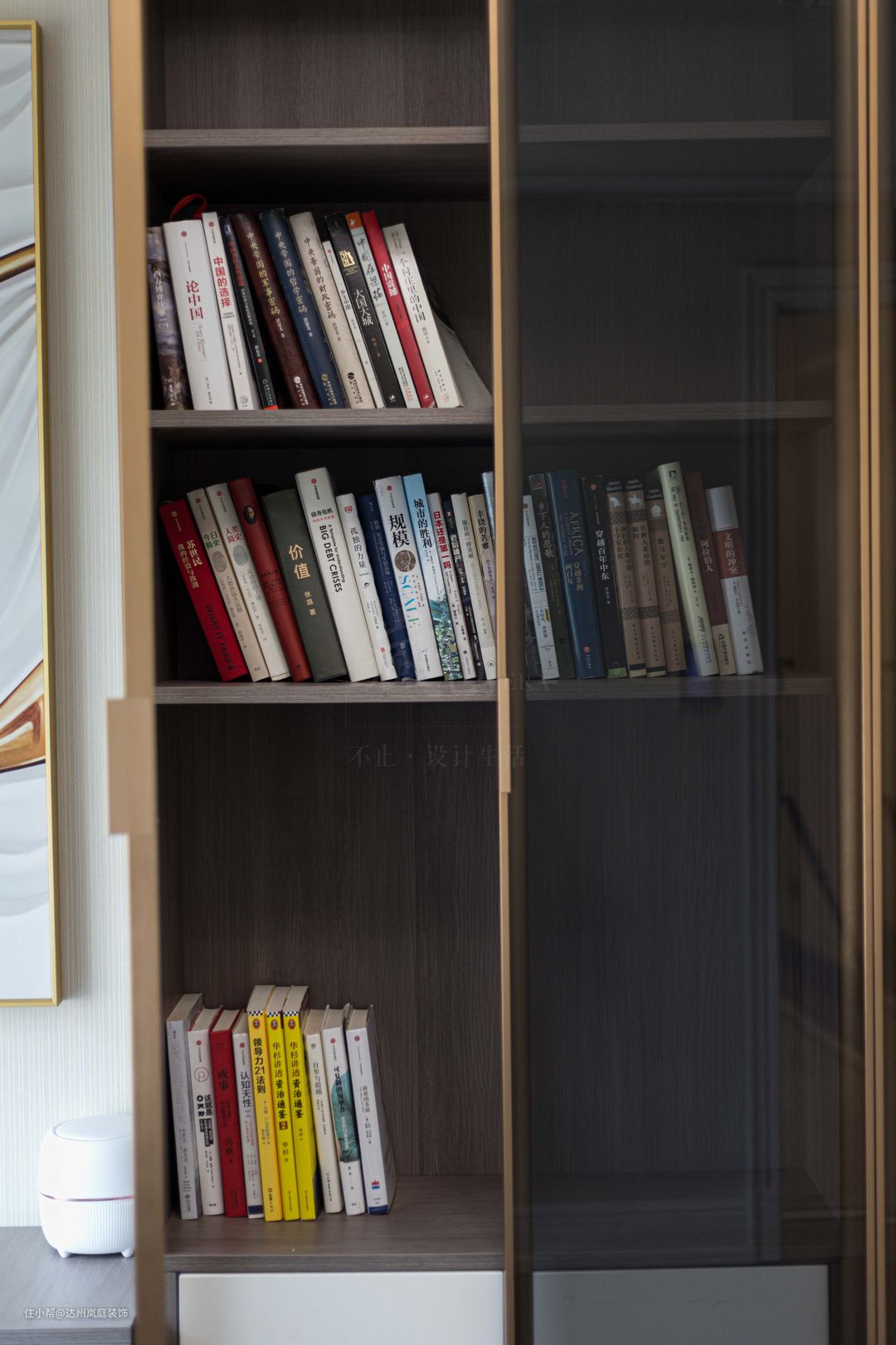寻常书柜的标配,在里面还加入了抽屉,平时放一下比较有价值贵重的物品比较适合。收纳空间超足,满足业主喜爱看书的习惯,再多书籍也能放下。
