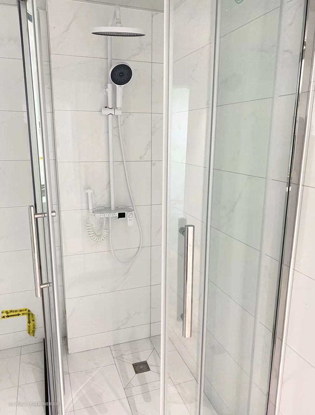 利用玻璃隔断,做了一个相对比较大的扇形淋浴区,干湿分离的卫生间让人的幸福感飙升。