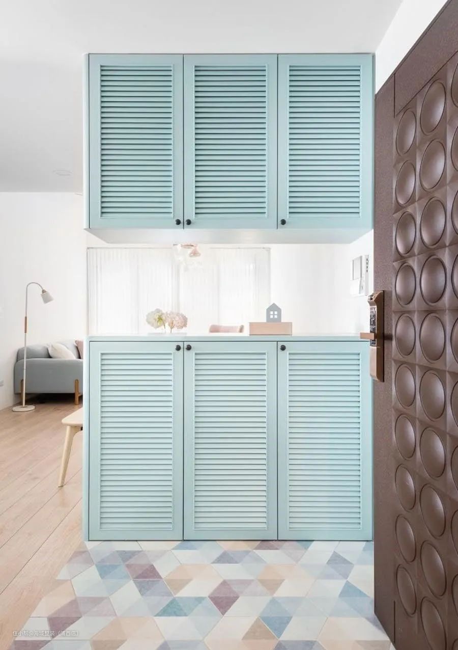注意:一般来讲,鞋柜都会放置在入户处,这就需要在对玄关进行设计时预留出足够的空间。若是玄关过道宽度小于120cm,可以将隔断屏直接做成鞋柜,推荐隔断屏使用清透的材料,或者局部镂空,避免因过道过小而产生沉闷感。